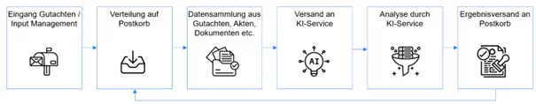 Die Umsetzung erfolgt in der Erkennung, Erschließen und Analysieren der komplexen Inhalte, Gliederung und Analyse durch die KI. Das durch die KI generierte Ergebnis wird dann durch wissende Sachbearbeiter weiterverarbeitet.